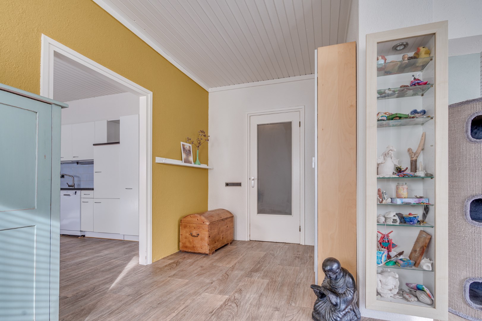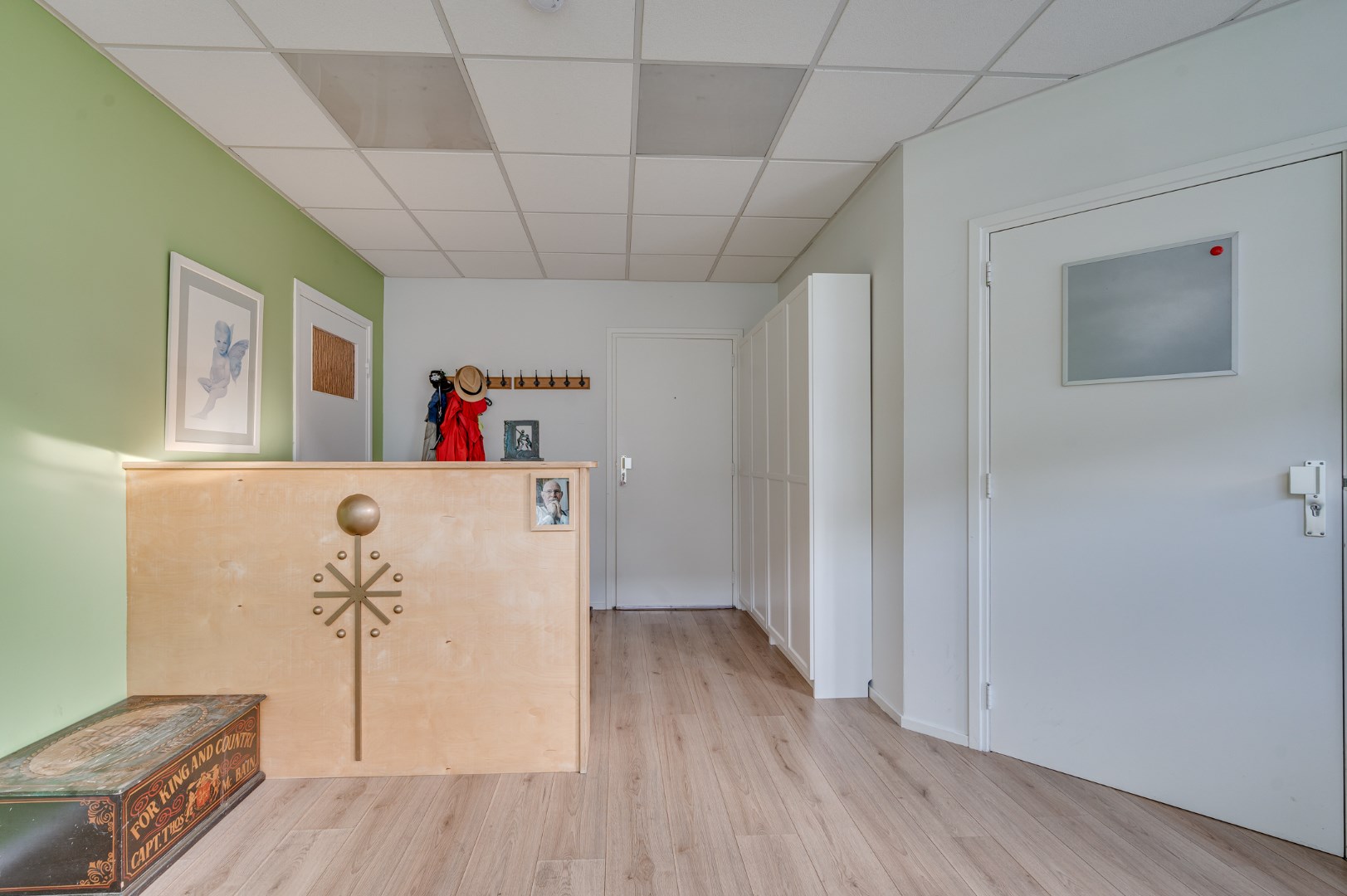 - Via de entree betreedt u de ruime ontvangstruimte (21,5m2) met inbouwkast.