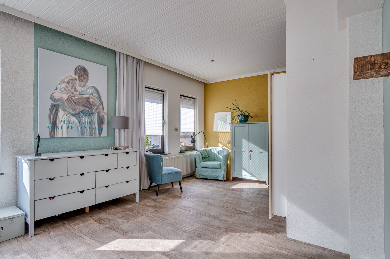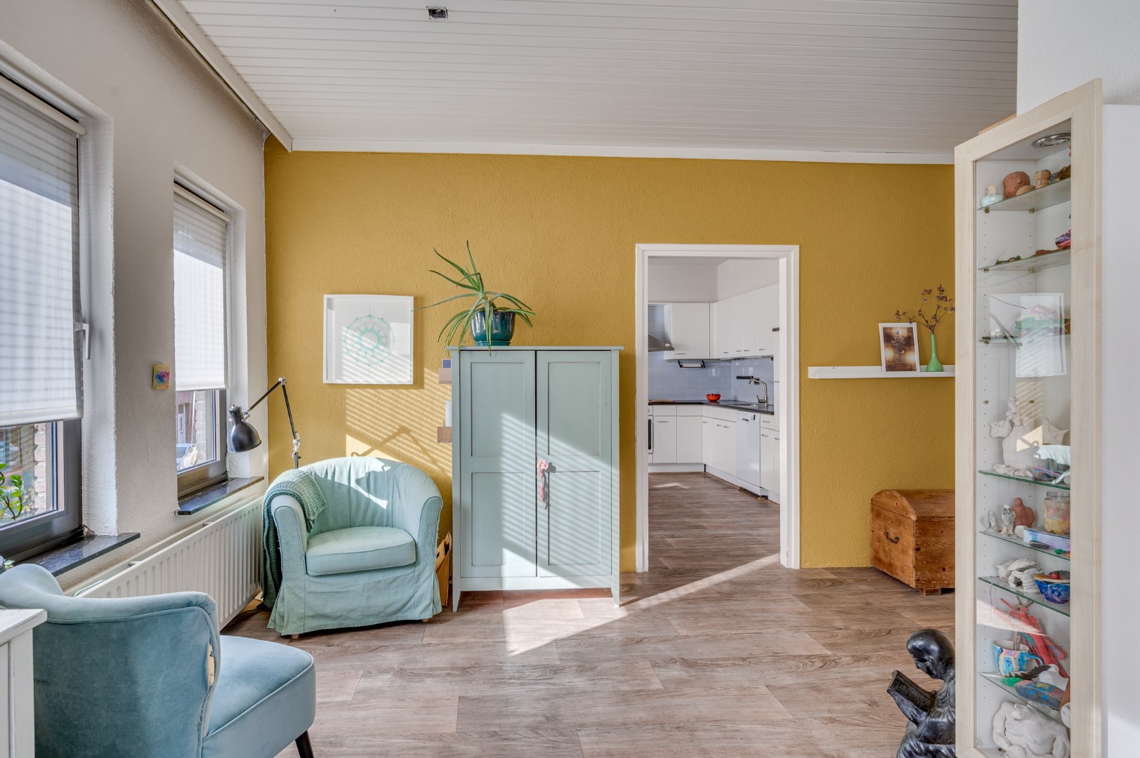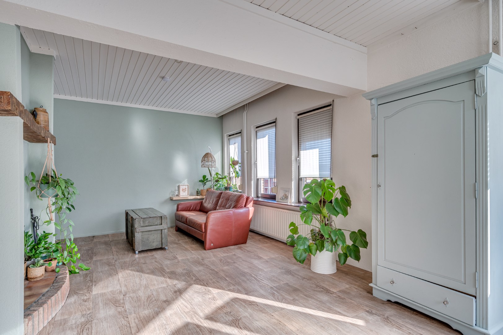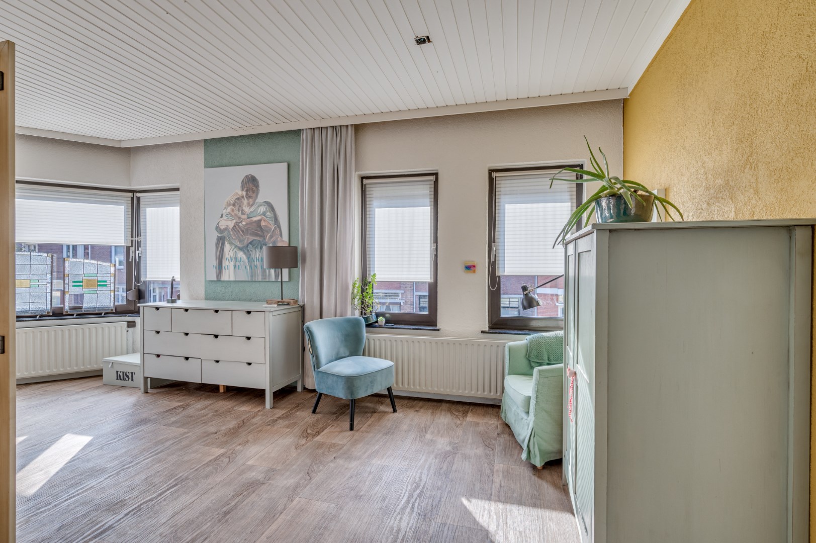 - Overal liggen hoogwaardige laminaatvloeren en zijn de ruimtes voorzien van net afgewerkte systeemplafonds met inbouwverlichting.