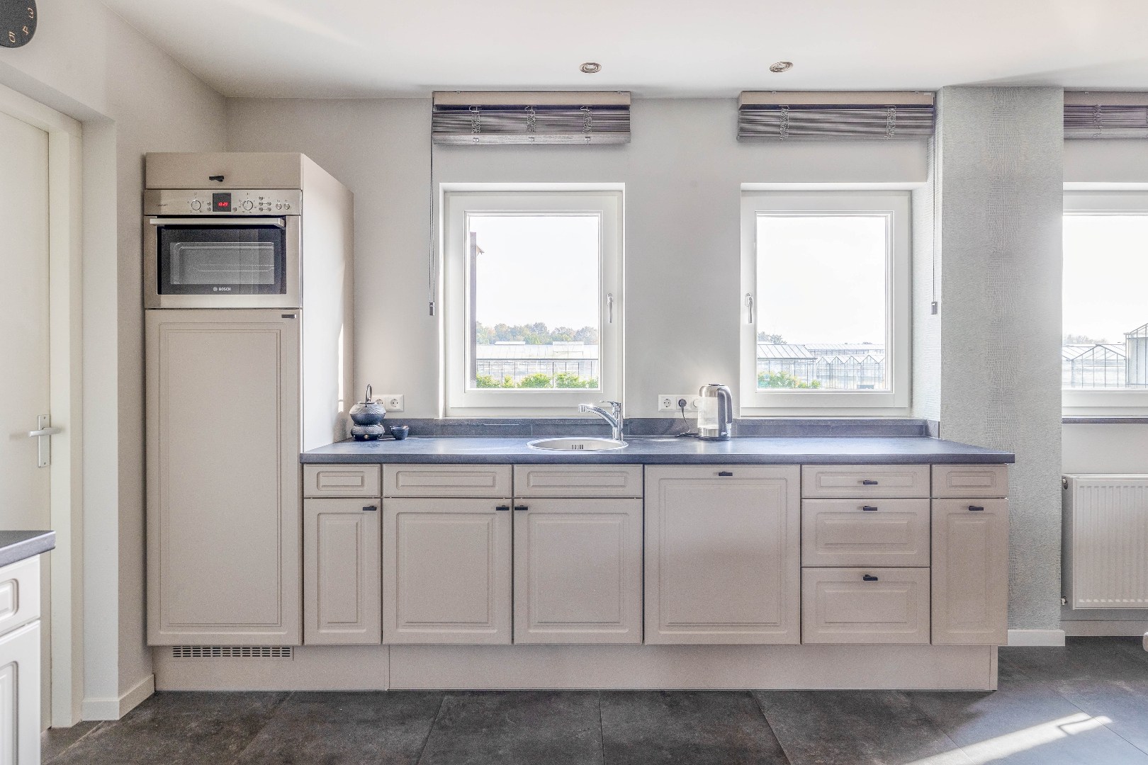 Op het perceel liggen 2 grote broeikassen; een Venlokas (1972) en een breedkapper (jaren '60). Vanuit het inpandige pomphuisje (internet en glasvezel) wordt de beregening geregeld. Dit is ook op afstand met de telefoon te bedienen. Daarnaast is er nog een toilet aanwezig.
