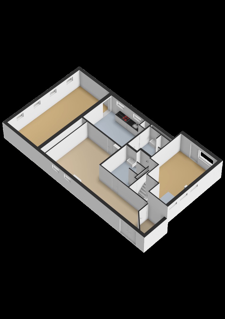 De grote ruimte biedt toegang tot de technische ruimte en de oprit door middel van de openslaande deuren. In de keuken zijn een inductiekookplaat, afzuigkap en spoelbak aanwezig. In de grootste slaapkamer/aparte ruimte is vloerverwarming aanwezig. 4 ramen zorgen hier voor veel daglicht.