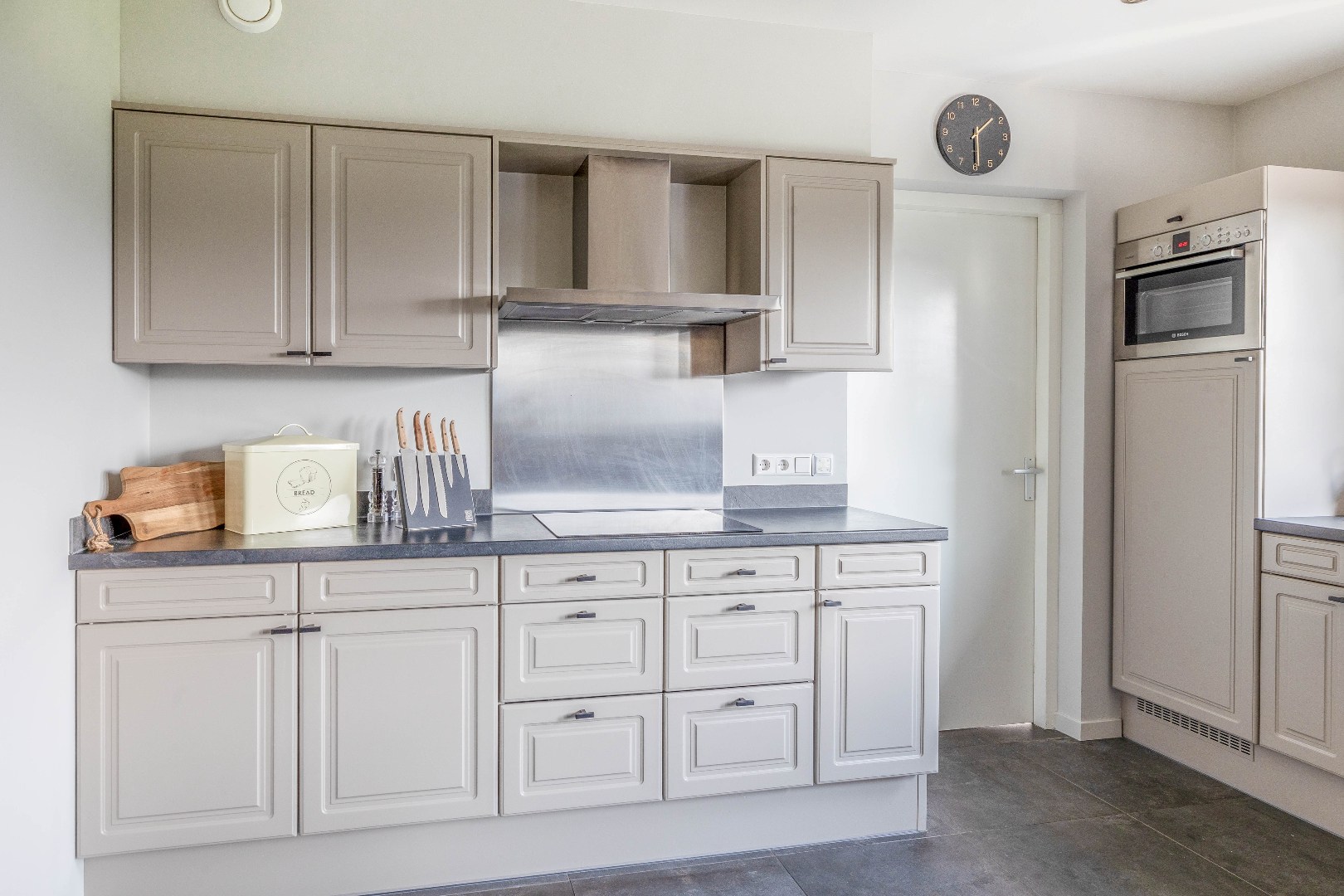 De woonkamer is voorzien van een aansluiting voor een houtkachel. In de open keuken zijn een vaatwasser (2023), koelkast, combi oven/magnetron, inductiekookplaat en afzuigkap aanwezig.