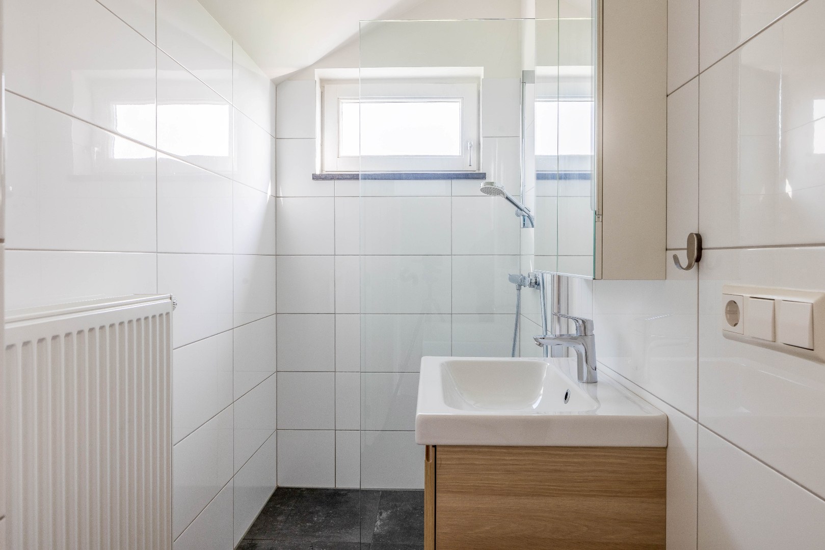 Beide badkamers zijn voorzien van een inloopdouche, wastafelmeubel en toilet.